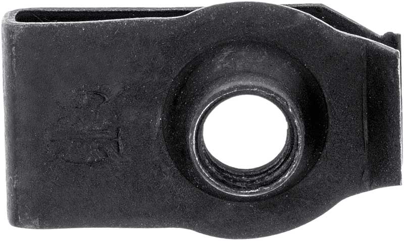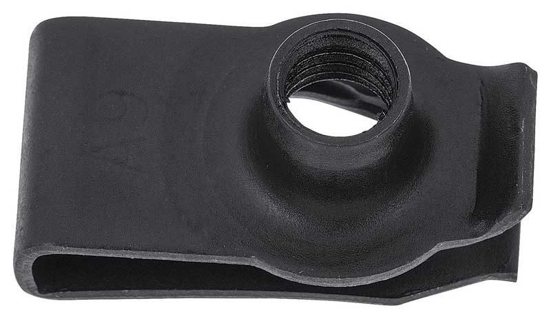 Black phosphate metric u-nut or foldover nut, that measures M6-1.0 to install and secure various components. Fits panel thickness from.80mm to 4 mm. (.030" to.160")