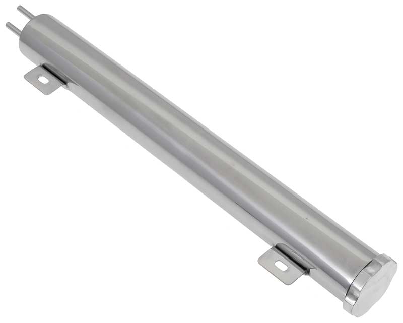 Radiator overflow tank designed for use with a variety of models. This beautiful OER® Authorized polished stainless steel radiator overflow tank will give your engine compartment a clean, custom looks. Includes a twist-on cap and mounting hardware. Measures 2" x 17". The mounting holes are 12-3/4" apart, center to center.