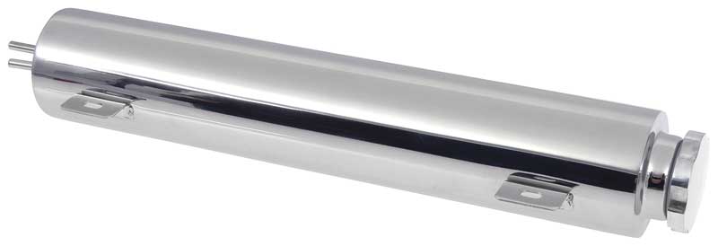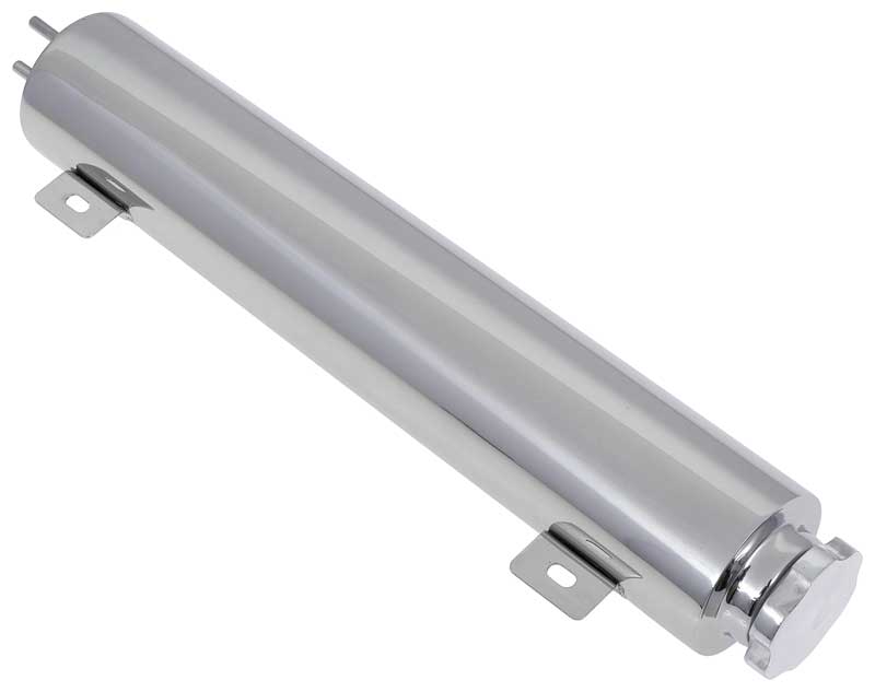 Radiator overflow tank designed for use with a variety of models. This beautiful OER® Authorized polished stainless steel radiator overflow tank will give your engine compartment a clean, custom looks. Includes a twist-on cap and mounting hardware. Measures 3" x 16".