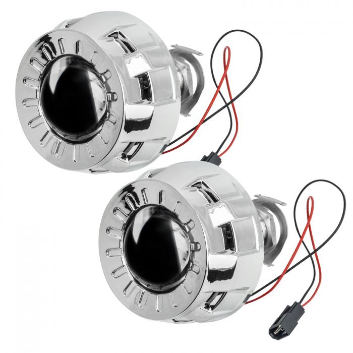 This projector fits right into the pre-existing hole in the back of your reflector bucket with little to no modification. The 50mm H1 7.1 offers amazing light output, the most precise sharp cutoff line, and non-existent glare. Product Features: Application: Universal. Cutoff Shields: Newly Designed Precise Cutoff. Bezels Included. Adapter & Locking Plates Included. Package Includes: 2 x ORACLE 50mm H1 7.1 Retrofit Projectors. 2 x Projector Bezels. Adapter Plates and Locking Plates.