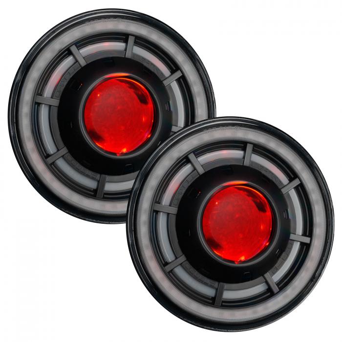 Introducing the all-new OculusTM Bi-LED Headlamp system by ORACLE Lighting. Now available in a ColorSHIFT RGB+W Color-Changing version! Featuring advanced LED projection with 4,800 Lumens of high-quality illumination for enhanced driver visibility in all weather conditions. The LED light source has lower power demands compared to the factory lamps while providing more light output. ColorSHIFT OculusTM Headlights feature 3-Tiered RGB features in the lamps: Outer Halo Ring (RGB+W) Inner Halo Ring (RGB) Projector Demon Eye (RGB) Each LED feature has a separate cable output and can be connected together so all 3 create the same color or set up as 3 separate Channels or zones depending on the user preference and the ColorSHIFT controller selected. Check out our Y-Splitter Adapters for the easiest control using our BC1 ColorSHIFT Controller Please note that these features are intended for off-road show use only and are not compliant for street use. The Pure-White DRL has its own wiring harness (same as the original Oculus) that connects to the fuse box with an add-a-circuit for easy and safe integration. The DRL will come on when the engine is running or can be connected to a switch (including the factory Aux switches) for additional user control.