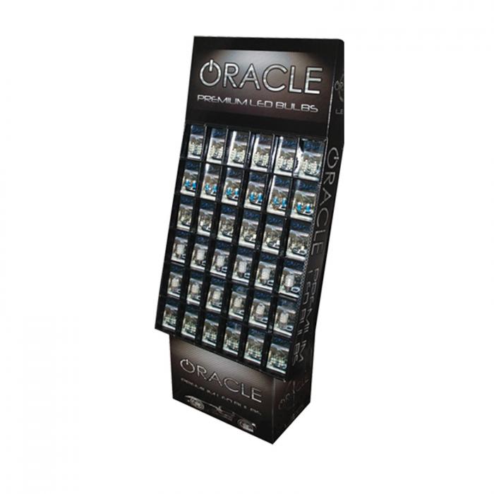 Our name has become the standard in solid-state automotive LED technology, and now we continue to push the envelope even further by evolving our line LED Automotive Bulbs. This Floor-Standing Display is the perfect way to display ORACLE LED replacement bulbs in your store's showroom! Standing over 50" tall this attractive display contains 36 individual slots to place ORACLE LED bulbs. With this many slots you can carry a good variety of different bulb sizes, colors, and configurations. This display makes it easy to choose from the hundreds of different types of LED bulbs we offer. Not sure which bulbs to select Not a problem! We have years of sales data that has allowed us to make a determination on the most popular bulbs and colors which are shipped to you pre-packaged and ready so start selling. From ORACLE Turn Signal Bulbs and ORACLE Chrome Bulbs, to PLASMA T-10 Bulbs, we will include the correct bulbs to have your customers coming back for more.