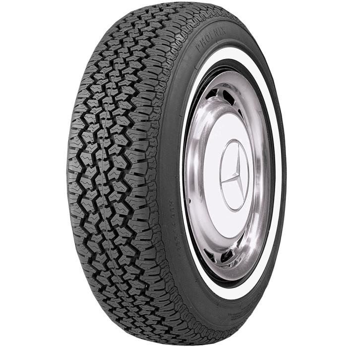 Our Phoenix passenger car radial tires are designed for classic luxury cars, such as Mercedes Benz, Rolls Royce and more. This classic whitewall tyre is an excellent replacement radial for Mercedes Heckflosse models. The high aspect ratio (80 series) gives them a taller profile, and the German style tread design is authentic for 1960s and '70s cars. The Phoenix whitewalls tires are DOT and ECE approved. also available as Blackwall tires.