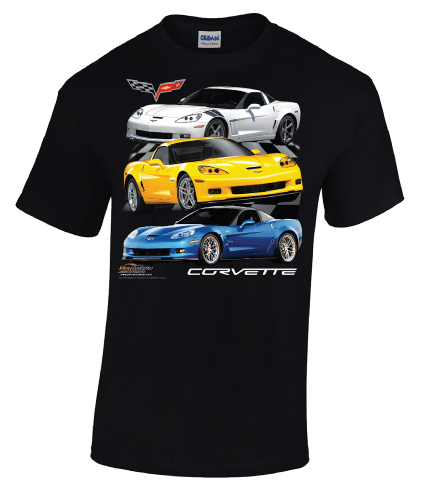 Black t-shirt 100% cotton preshrunk featuring all of the best C5 models on a soft, preshrunk black shirt. 100% preshrunk cotton; Double-needle stitching throughout; Seamless, 7/8"" collar; Taped shoulder-to-shoulder.