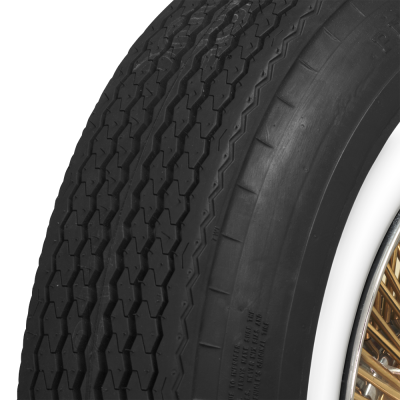 This product features a genuine narrow whitewall sidewall style. This means that the bright white rubber is added directly to the tire sidewall during initial construction of the carcass, resulting in a truly integrated, high-quality product after vulcanization. When we reference "narrow whitewall" tires, we typically mean a whitewall that measures less than two inches, but it can also mean a whitewall that does not reach all the way into the bead. Narrow whitewall tires are popular for many cars built in 1960's all the way into the 1990's.