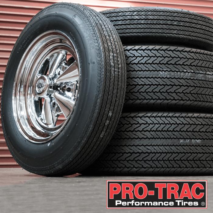 Pro-Trac tires are perfect for your Pro Street, street machine or hot rod, thanks to a super wide profile that offers the race ready look without the safety concerns of driving on the street with actual racing tires. These skinny front tires are the perfect compliment to those big Pro-Trac rears. Choose from two different front runner tire size for the perfect stance. Pro-Trac tires are DOT approved, bias ply tires and they're perfect for a car that is tubbed and features a narrowed rear end. The tread pattern has been thoroughly tested to ensure safety in dry and wet conditions. Pro Street is making a big comeback, so put your ride back on the road with a new set of Pro-Trac meats!