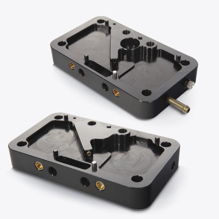Upgrade your Double Pumper with race-ready billet metering blocks! Primary block retains the original vacuum provisions. Secondary block has no power valve provision to fit the latest generation of carburetors. Kit includes necessary gaskets for conversion. These blocks have a four corner idle system provision (you must have the correct throttle body for the four corner idle system to work). Available in Black.