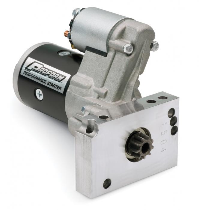 High-torque, gear-reduction design. 100% NEW, not rebuilt. Offset design results in more clearance between the oil pan and the starter, and can be rotated for additional chassis clearance. The high-torque, high-output motor spins the engine over faster than stock starters, delivering 40-50% more cranking power. 3.75-to-1 sealed gear-reduction drive and full ball bearing construction. Includes shims to set pinion-gear engagement (when necessary). Approved by all leading sanctioning organizations. Fits all Chevy V6 and small and big block V 8 engines using 153 or 168 tooth flywheels. Heavy-duty PROFORM P/N 66258 weighs 1-1/2 lbs. more and is 1" longer than P/N 66256.