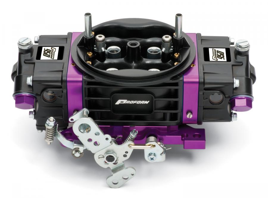 Based on the wildly popular original Race Series carburetors, PROFORM's Black Race Series Carburetors include a Black Diamond coating for enhanced fuel cooling. Each carburetor is hand assembled and tested in the U.S. utilizing the PROFORM High-Flow Carburetor Main Body, durable billet metering blocks, high performance billet throttle baseplate, and lightweight aluminum fuel bowls. PROFORM Black Race Series Carbs include: (1) Adjustable High-Flow Aluminum Main Body with Screw-In Air Bleeds, Maximum Air Flow: No Air Horn, Choke Tower, or Choke Control, Uses standard service and tuning components! (2) Billet Throttle Base Plates: Adjustable Secondary Air Flow Cam Bracket, Solid Billet Construction, Manufactured in the U.S.A., Timed and Full Vacuum Tubes for Accessories and Tuning, Button Torx Head Throttle Plate Screws, Power Valve Blow Out Protection, Progressive Slip Link Mechanical Secondary Linkage, Serviceable Throttle Levers, and Ford Kickdown! (3) Billet Metering Blocks: Solid Billet Construction, Durable, No Warping or Porosity Problems, Changeable Idle Feed Restriction, Manufactured in the U.S.A.! (4) Aluminum Fuel Bowls: Lightweight Aluminum, Sight Glass Windows for easy float adjustment!