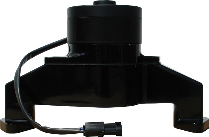The new Chevy big-block electric water pump features a durable 12-volt motor pumping up to 35+ gallons of water per minute. Each pump is made from durable but light-weight die-cast aluminum with epoxy powder coating for corrosion resistance. Comes with FREE billet aluminum inlet fitting, and mating weather-tight connector. Draws 6 amps.