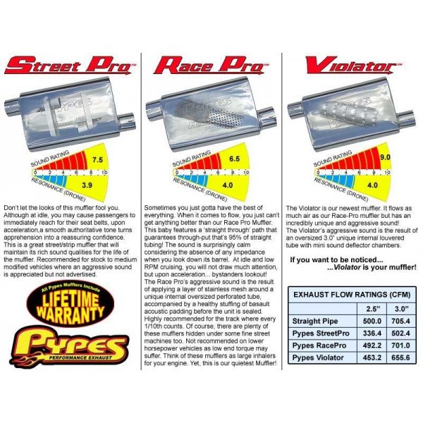 Pypes Exhaust Systems are designed to deliver enhanced performance, provide extra punch in the passing lane, and improve gas mileage. Fabricated using the highest quality materials, our 16 gauge, mandrel-bent, stainless steel pipe ensures maximum exhaust gas flow, which can significantly boost horsepower. The stainless construction of our pipes enables them to resist corrosion and extends the life of the system. Pypes mufflers are also stainless constructed and precision matched to deliver the ultimate in sound and performance. Stainless X-pipe, clamps and hangers make the Pypes system unmatched by any other system on the market. These systems can be installed at home without any special tools.  Some cutting may be required..