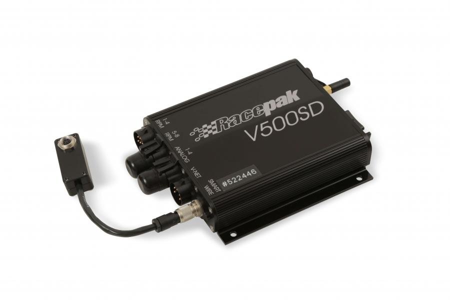 The new Racepak V500SD Serialized Data Loggers include all of the features and benefits of their successors, but now also include built-in pre-configured data analysis channels allowing you to make quick decisions based on real data between rounds at the track. The new secured loggers protect your vital system data with a serialization number that is unique for each individual logger. Not only does this feature provide protection for your data, but it also allows you to quickly organize logs between rounds. Out-of-the-Box, this system will data log: Engine RPM Drive Shaft RPM (Requires Driveshaft Collar Sold Separately) Accelerometer G-Meter Lateral G-Meter Battery Voltage List of Pre-configured data analysis math channels are included in the DataLink V5 software: Engine vs. Driveshaft Ratio Clutch % Slip Clutch Slip Ratio Trans Ratio RR, LR, RF, LF Shock Velocity Average Air/Fuel Ratio Average Exhaust Gas Temperatures CC's Per Turn (for Fuel Flow) Track Time G-Meter MPH, G-Meter Distance (Feet) 60 ft, 330 ft, 660 ft, 1000 ft, 1320 ft Clock Markers