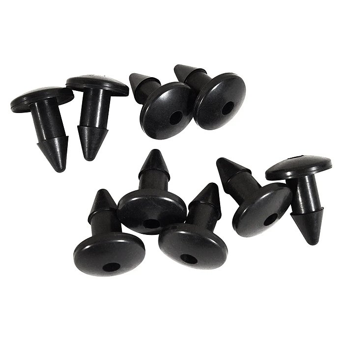 Chevrolet Corvette Rubber Carpet Fasteners are designed as integral components to secure the carpeting in place within the vehicle's interior. Constructed from durable rubber materials, these fasteners are engineered to withstand the rigors of daily use and maintain a secure grip on the carpeting, preventing shifting or movement.  These fasteners feature a push-in design, allowing for easy installation without the need for specialized tools. Once installed, they provide a reliable anchor point for the carpeting, ensuring a snug fit and a clean, finished appearance.