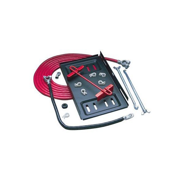 The kits provides better weight distribution and better traction. These coated-steel battery trays mount directly to the chassis, and all kits come complete with hold-downs, J-bolts, cable clamps, and appropriate lengths of heavy-gauge red and black cable with factory crimped terminals. The dual-battery kits permit spaced-apart mounting for custom installations and reduces engine compartment clutter.