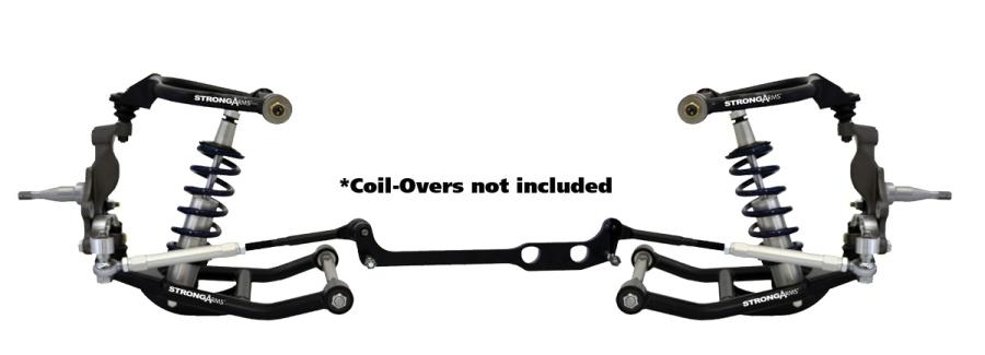 • Optional “Hub” Spindlesoffer the same geometry improvements as the pin spindle but add the performance and simplicity of late model Corvette hubs and brakes. Uses C5/C6/C7 Corvette hubs for maximum strength, consistent braking and reduced maintenance. (Hubs not included). Compatible with C5/C6 Corvette brake systems, OE and aftermarket (caliper brackets included). Minimum 17″ wheels.