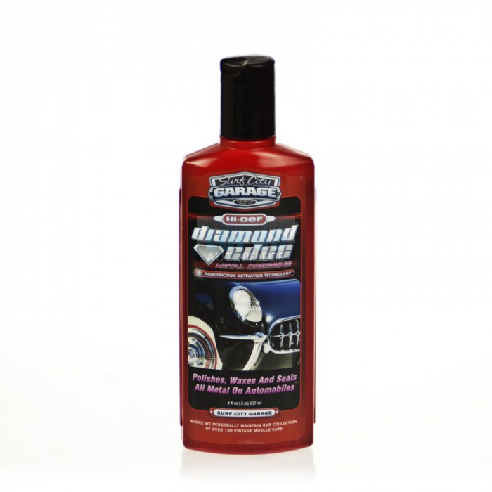 You’ve worked hard to get your metal looking like new with Maximum Metal, but how do you keep it that way? Diamond Edge Metal Dressing. With three stages of cleaning, polishing and long-lasting protection going on, it puts the final diamond edge on your polished metal. If you think your metal is shiny now, apply some Diamond Edge and stand back. You’ll think you’re in a fun house of mirrors by the way reflections are shining and bouncing off your metal. Get the most brilliant shine possible with Diamond Edge Metal Dressing.