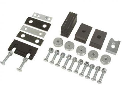 This body mounting kit contains all mounting bushings with all hardware included. It is correct S.B.R. compression molded with steel sleeve inserts. Bushing are made of high grade non recycled rubber.1 Year Manufacturer WarrantyContains…