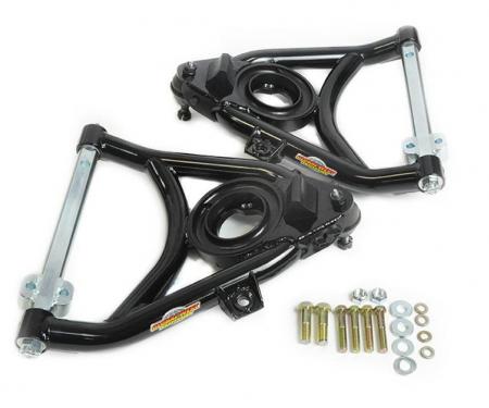 The a-arm kit comes complete and includes beefy cross shafts to virtually eliminate shaft flexing, which changes suspension geometry. U.S. made high quality precision ball joints as well as Grade 8 fasteners are also included.