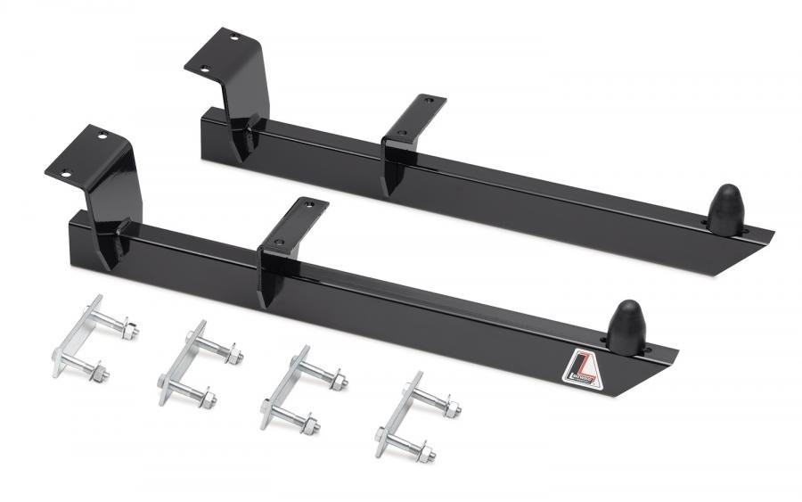 Lakewood universal heavy duty traction bars are designed to fit most leaf spring applications. These bars strengthen rear suspension and reduce wheel-hop. They are constructed of heavy gauge rectangular steel tubing and feature MIG welded brackets for extra strength. Rubber snubbers, U-bolts and installation hardware is included.