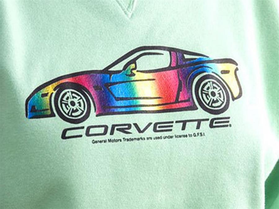 Gear For Sports super soft 80/20 crew sweatshirt with a rainbow foil design car and script across the front.