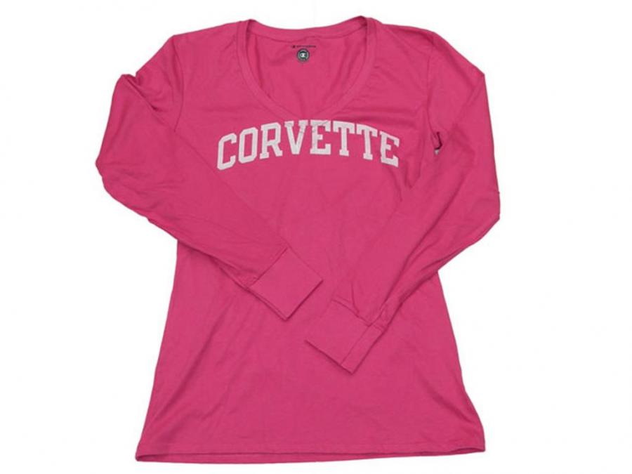 T-Shirt Womens Long Sleeve Pink With Corvette Script