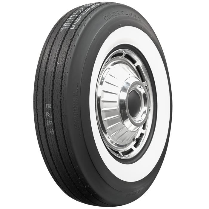 Coker Classic Whitewall bias ply wide tires are made in the USA and have been the choice of classic and hot rod owners for over 30 years. Coker Classic Whitewall tires feature authentic sidewall and tread designs in a premium bias ply tire for collectors. The genuine whitewall is constructed into the tire from the very beginning, for a beautiful and durable tire. DOT and ECE (European Union) approved, and backed by our life of the tread warranty. Please note that dimensions listed tread width, section width and overall diameter are non-scientific and based on an inflated tire, mounted on a wheel. Dimensions may vary due to rim width and inflation pressure. Tread patterns and sidewall styles vary, please click on individual tires below to view photos.