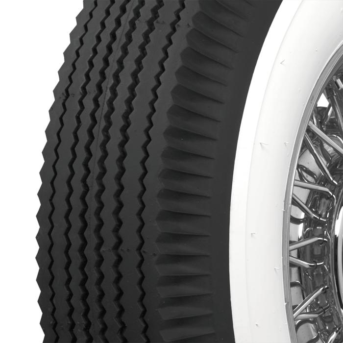 This product features a genuine wide whitewall sidewall style. This means that the bright white rubber is added directly to the tire sidewall during initial construction of the carcass, resulting in a truly integrated, high-quality product after vulcanization. Wide whitewall tires were a very popular choice from the 1930's through the end of the 1950's, and were eventually phased out of mainstream production by 1962. Originally, wide whitewall tires featured a bias ply construction, Coker Tire offers these tires in both original style bias ply and modern radial construction.
