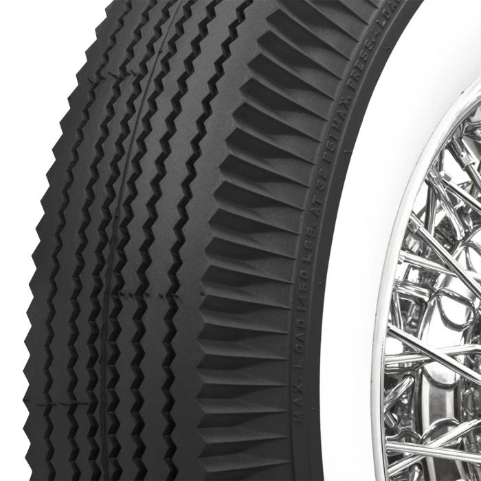 This product features a genuine wide whitewall sidewall style. This means that the bright white rubber is added directly to the tire sidewall during initial construction of the carcass, resulting in a truly integrated, high-quality product after vulcanization. Wide whitewall tires were a very popular choice from the 1930's through the end of the 1950's, and were eventually phased out of mainstream production by 1962. Originally, wide whitewall tires featured a bias ply construction, Coker Tire offers these tires in both original style bias ply and modern radial construction.