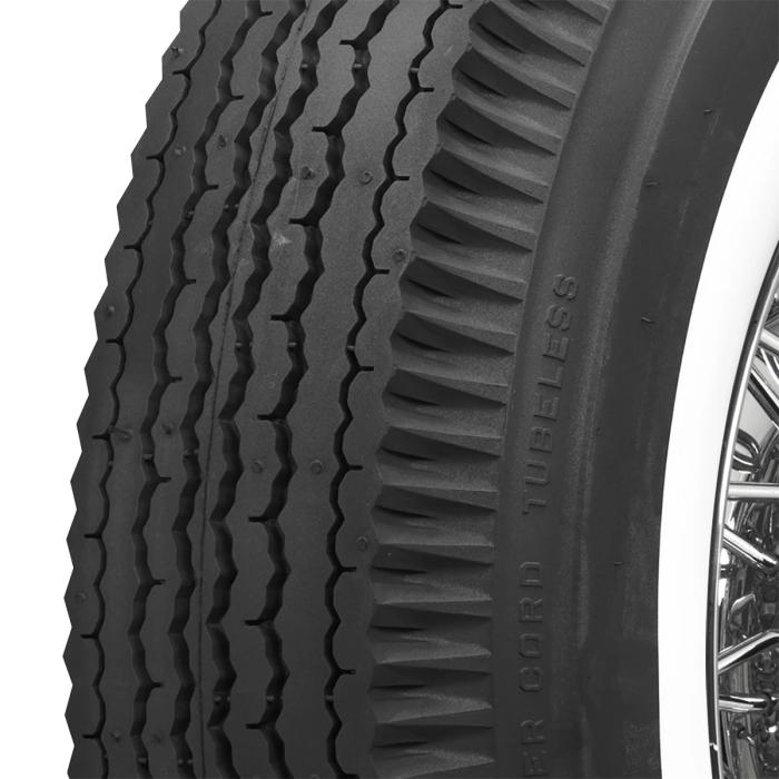 This product features a genuine wide whitewall sidewall style. This means that the bright white rubber is added directly to the tire sidewall during initial construction of the carcass, resulting in a truly integrated, high-quality product after vulcanization. Wide whitewall tires were a very popular choice from the 1930's through the end of the 1950's, and were eventually phased out of mainstream production by 1962. Originally, wide whitewall tires featured a bias ply construction, Coker Tire offers these tires in both original style bias ply and modern radial construction.