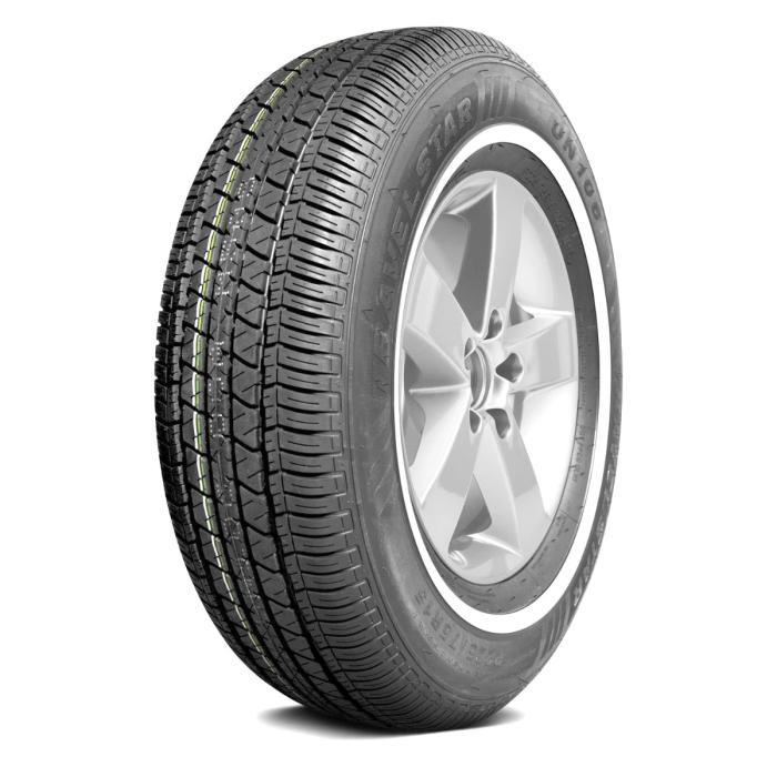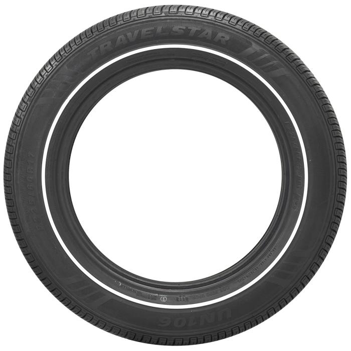 The Travelstar UN106 is an ultra-stylish whitewall tire that provides a comfortable, quiet ride. This all-season tire performs great and offers impressive grip in mud and snow road conditions. The 4 circumferential grooves provide outstanding water evacuation, resisting hydroplaning. The Travelstar UN106 all season tire features a narrow whitewall, and the 225/60R17 sizing offers OE fitment for many luxury sedans from the late 1990's and 2000's, such as Lincoln Town Car, Mercury Grand Marquis, and more. The tires feature a 50,000 mile tread, T speed rating and an all-season tread that is perfect for your late model sedan.