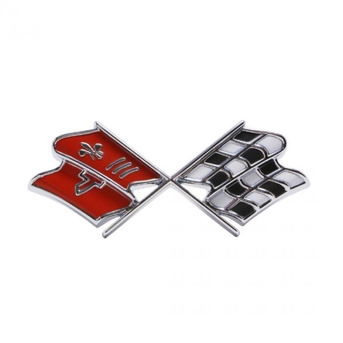 Trim Parts 67 Corvette Front X-Flag Emblem, Orange Red, Each 5235