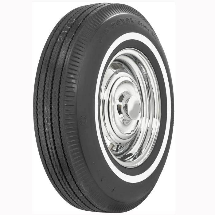 U.S. Royal pie crust narrow whitewall tires are made in the USA in the original molds and backed by our life of the tread warranty. These tires feature classic pie crust upper sidewall styling and narrow whitewalls. The U.S. Royal product line offers direct OE bias ply replacement tires for cars from the 1940s to the 1960s. Please note that dimensions listed tread width, section width and overall diameter are non-scientific and based on an inflated tire, mounted on a wheel. Dimensions may vary due to rim width and inflation pressure. Tread patterns and sidewall styles vary, please click on individual tires to view photos.