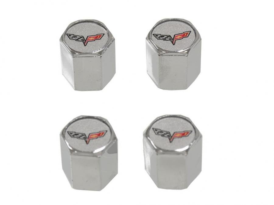 Valve Stem Caps With C6 Logo - Chrome - Set of 4: