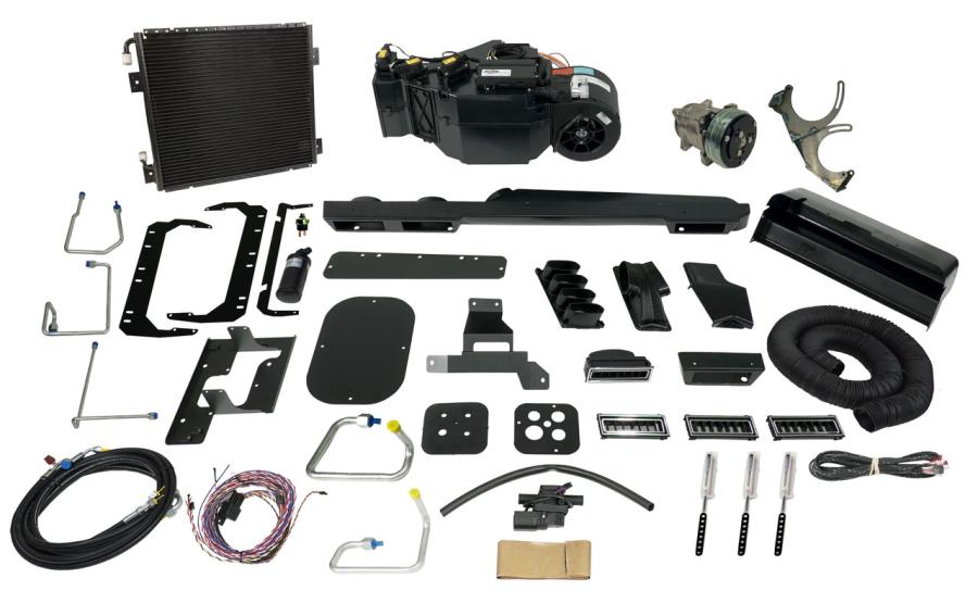 **This complete kit includes everything from the evaporator kit, plus all under-hood components such as the compressor and bracket, condenser with brackets, preformed refrigerant lines, drier, fittings, hardware, and detailed installation instructions.