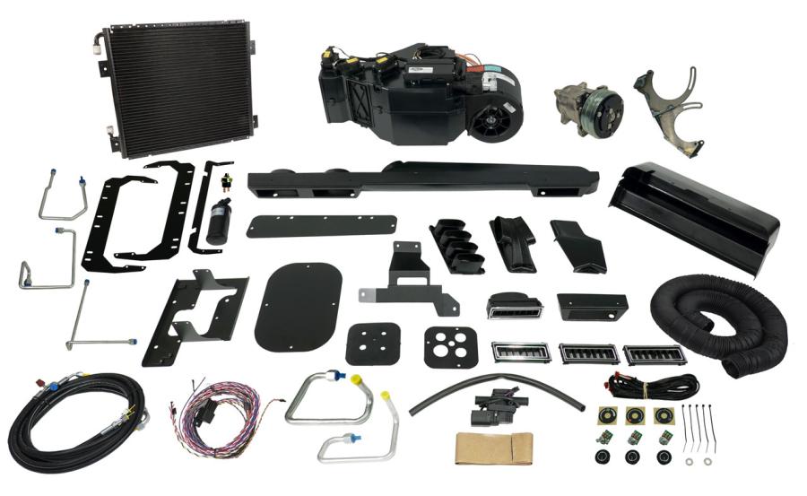 **This complete kit includes everything from the evaporator kit, plus all under-hood components such as the compressor and bracket, condenser with brackets, preformed refrigerant lines, drier, fittings, hardware, and detailed installation instructions.