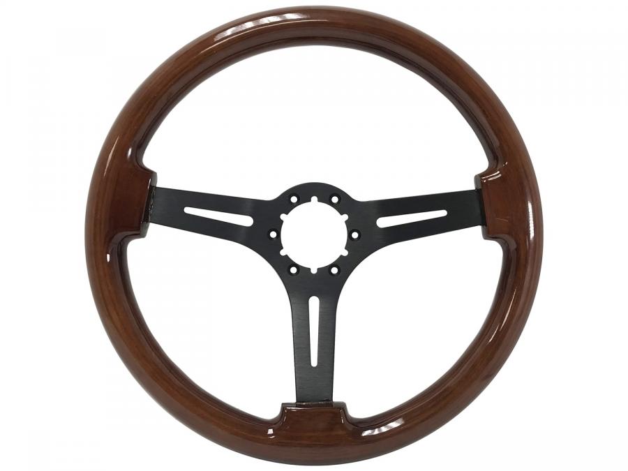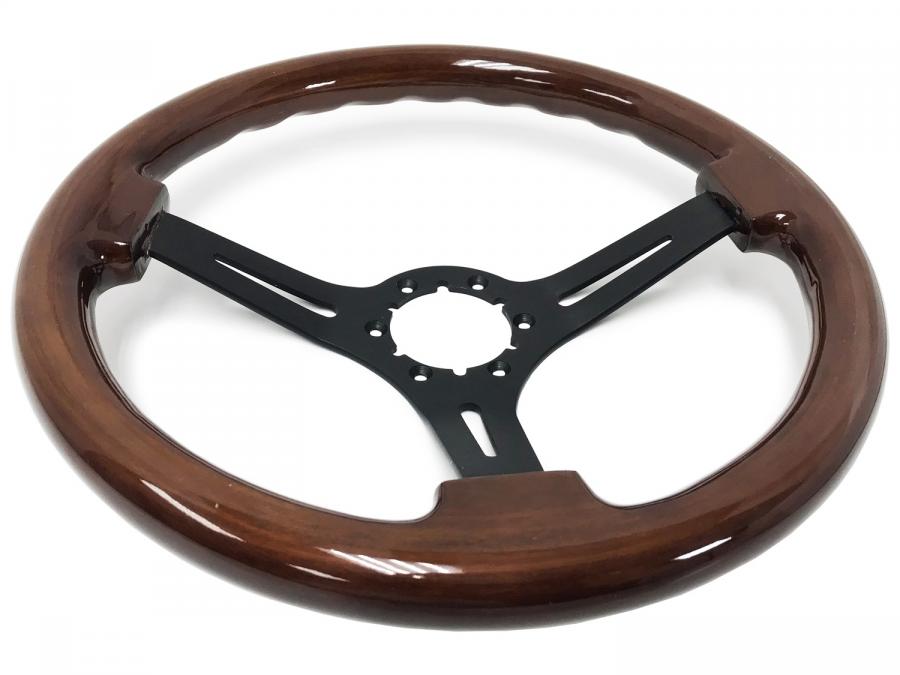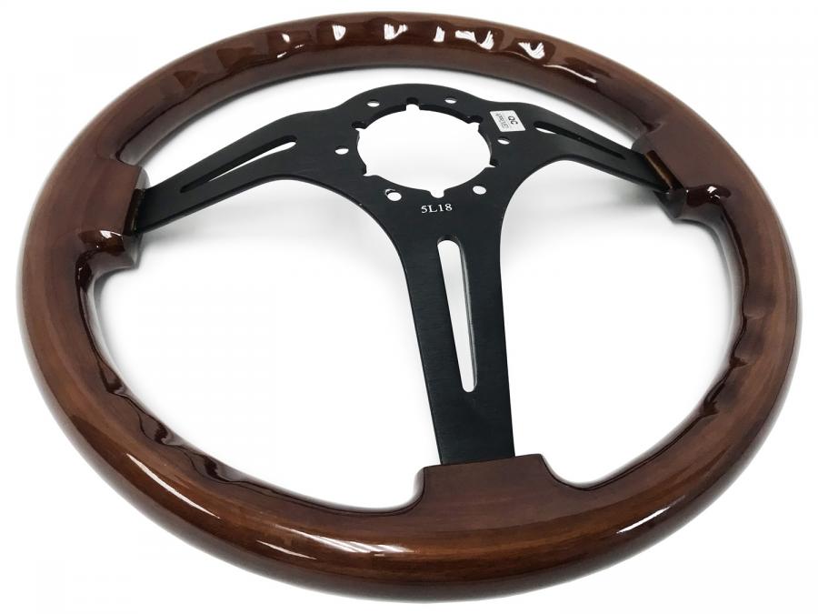 S6 Sport Wood series come in real mahogany wood finish with high quality black center finish and slot design. They feature a 14 in. diameter with a 2.5 in. depth for turn signal clearance.