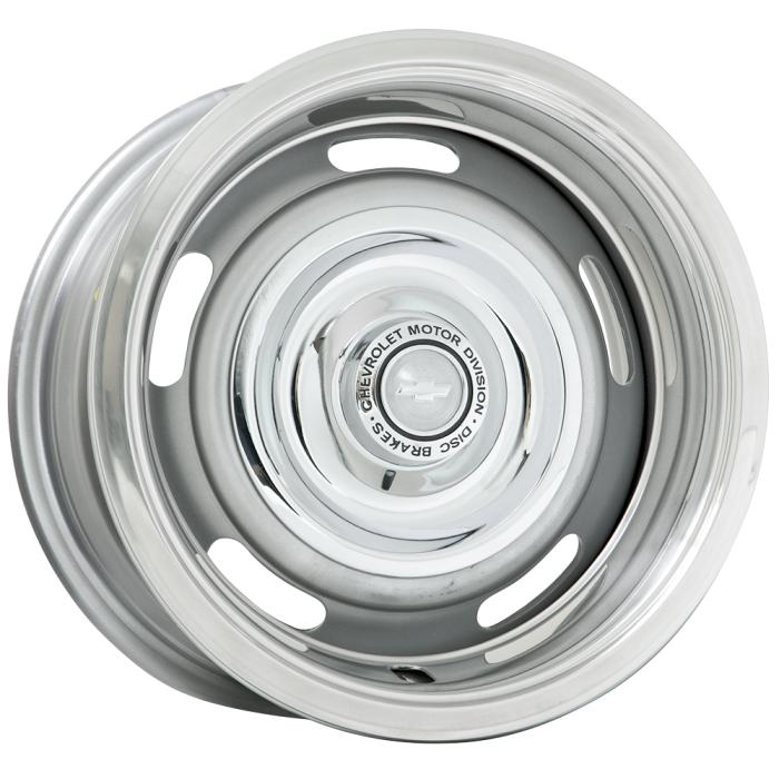 The 34 Series Camaro Style Rallye wheel is offered with durable silver metallic powder coat finish (not factory color) and accepts 7.0" inside knob caps including factory caps. 34 Series Camaro Rally wheels have a direct bolt 5x4.