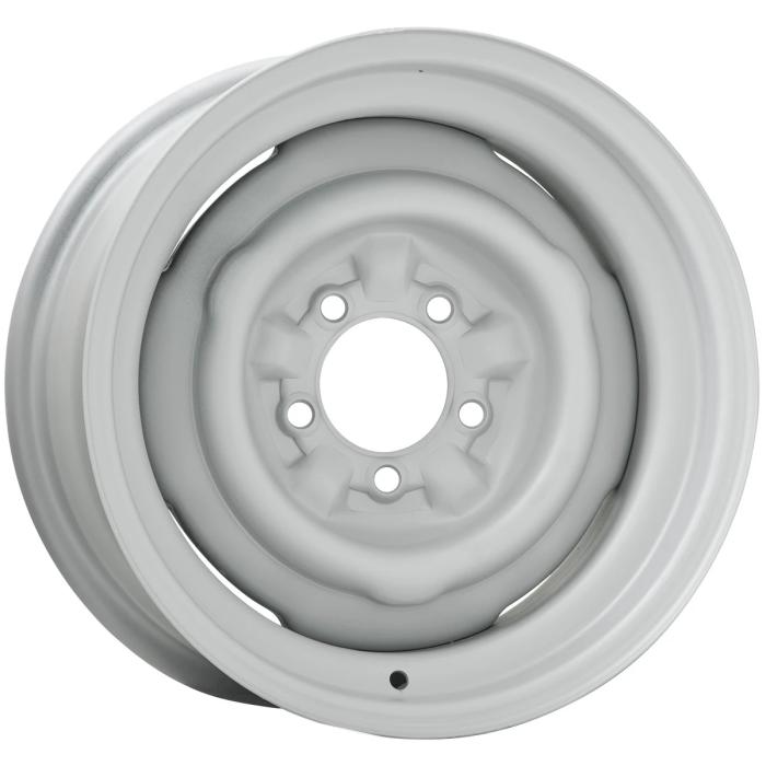 The 62 Series O.E. Chevy-Ford wheel in primer is a versatile wheel available in sizes from 14-17". The 64 Series wheel fits 10 1/8" outside knob caps and will accept many Ford & GM factory "dog dish" caps.