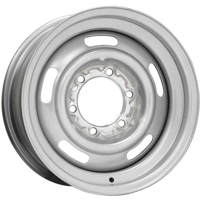 The 35 Series Six Lug (GM Pattern) Pickup Rallye wheel offers classic Chevy Rally wheel design for applications requiring a 6x5.5" bolt pattern. The 35 Series features a durable silver powder coat finish and sizes from 15x5 to 15x14".