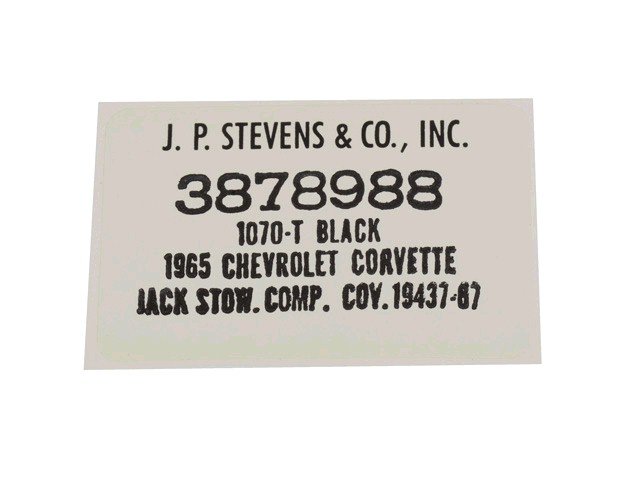 Corvette Decal, Jack Cover Board Carpet, JP Stevens Company, 1965-1967