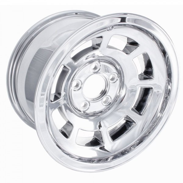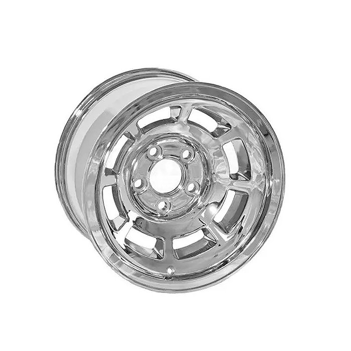 Quality Reproductions of 1976-1982 Corvette Wheels Aluminum Construction With Triple Chrome Plating Requires Wheel Cap(#50-10869) & Lug Nuts(#50-10865) 15 x 8 5-Lug Orientation Each A Corvette-style chrome replacement wheel may be just the extra style your Chevelle needs. The wheels on your classic Chevelle set the style for the rest of your car to follow. These Corvette-style wheels are constructed of aluminum with a triple chrome plating and are reproductions of the 1976-1982 Corvette wheels. Note: May rub the front inner or outer fender when turning.