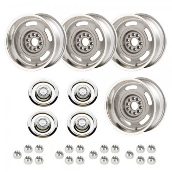 Classic Chevy - Rally Wheel Kit, 1-Piece Cast Aluminum With Flat Disc Brake Style Center Caps, 17x9