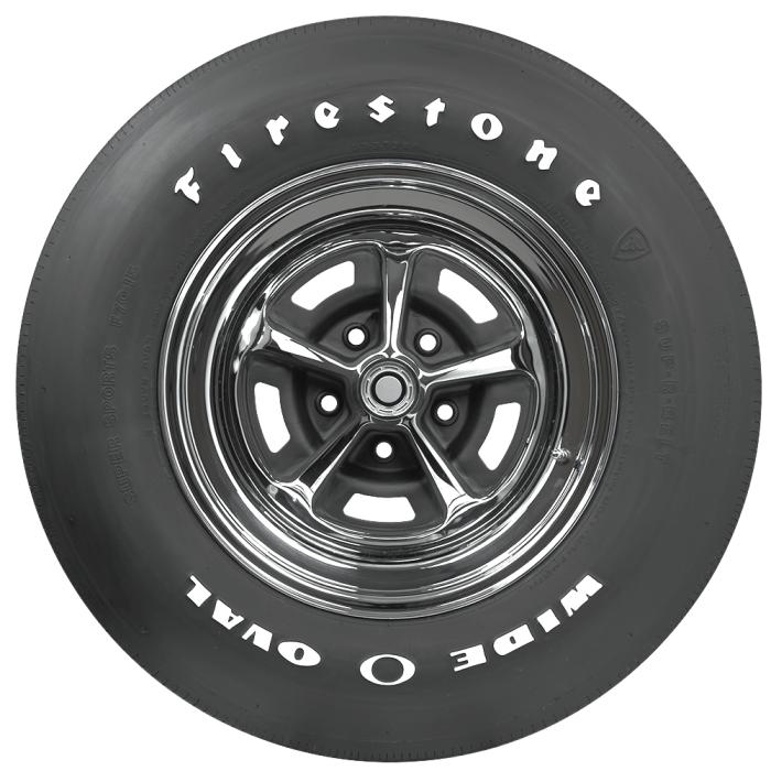 Nothing says muscle car quite like a classic set of raised white letter tires, and Firestone Wide Oval tires were original equipment for many muscle and pony cars from 1967-74. A bold "Wide Oval" logo on the sidewall instantly takes you back to the sixties when big engines and four speeds ruled the streets. Muscle cars are getting big money at auctions and the buyers love a restored-to-stock or Day Two muscle car more than ever. Firestone Wide Oval tires are made in the original molds in the USA with modern materials and technology and are backed by our exclusive Life of the Tread warranty.