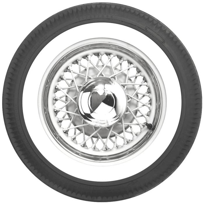 This product features a genuine wide whitewall sidewall style. This means that the bright white rubber is added directly to the tire sidewall during initial construction of the carcass, resulting in a truly integrated, high-quality product after vulcanization. Wide whitewall tires were a very popular choice from the 1930's through the end of the 1950's, and were eventually phased out of mainstream production by 1962. Originally, wide whitewall tires featured a bias ply construction, Coker Tire offers these tires in both original style bias ply and modern radial construction.