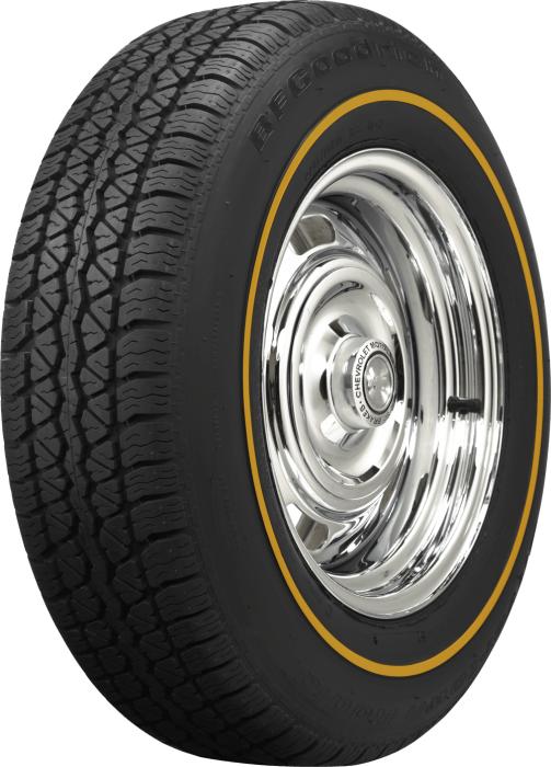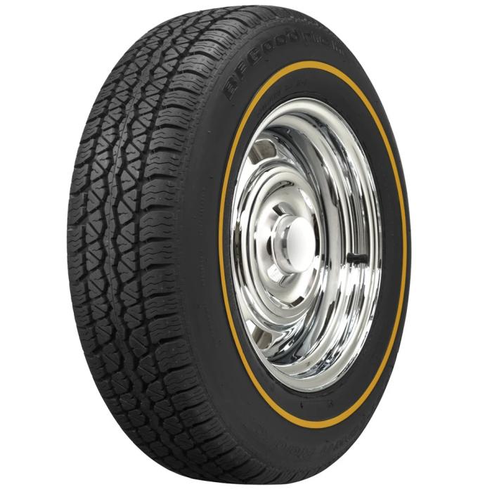 BFGoodrich Radial Goldline tires feature an all-season tread design and are great for classics, hot rods, and customs. This is a very popular tire for Corvettes, muscle cars and customs with genuine Goldlines built right into the tire from the beginning. These Radial Silvertown tires are DOT and ECE (European Community) approved and backed by our life of the tread warranty. Dimensions listed below are non-scientific and based on an inflated tire, mounted on a rim. Dimensions mat vary slightly with rim size and inflation pressure.