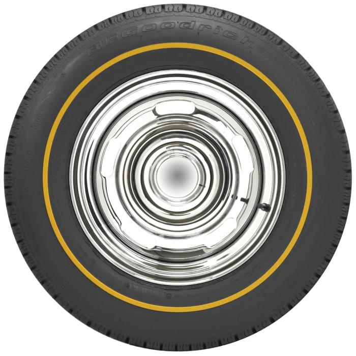 Corvette Sting Ray buyers could choose from many options, including the tires. Blackwall, narrow whitewall and goldline tires were options during the 1965 and 1966 Corvette Sting Ray production years. Goldline may also be referred to as goldwall or gold stripe tires. These tires are available in authentic Firestone, BFGoodrich and Goodyear brands in the original 775-15 bias ply size, and we also produce a modern radial BFGoodrich 205/75R15 with a 3/8-inch gold line.