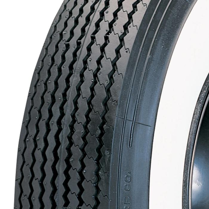 This product features a genuine wide whitewall sidewall style. This means that the bright white rubber is added directly to the tire sidewall during initial construction of the carcass, resulting in a truly integrated, high-quality product after vulcanization. Wide whitewall tires were a very popular choice from the 1930's through the end of the 1950's, and were eventually phased out of mainstream production by 1962. Originally, wide whitewall tires featured a bias ply construction, Coker Tire offers these tires in both original style bias ply and modern radial construction.