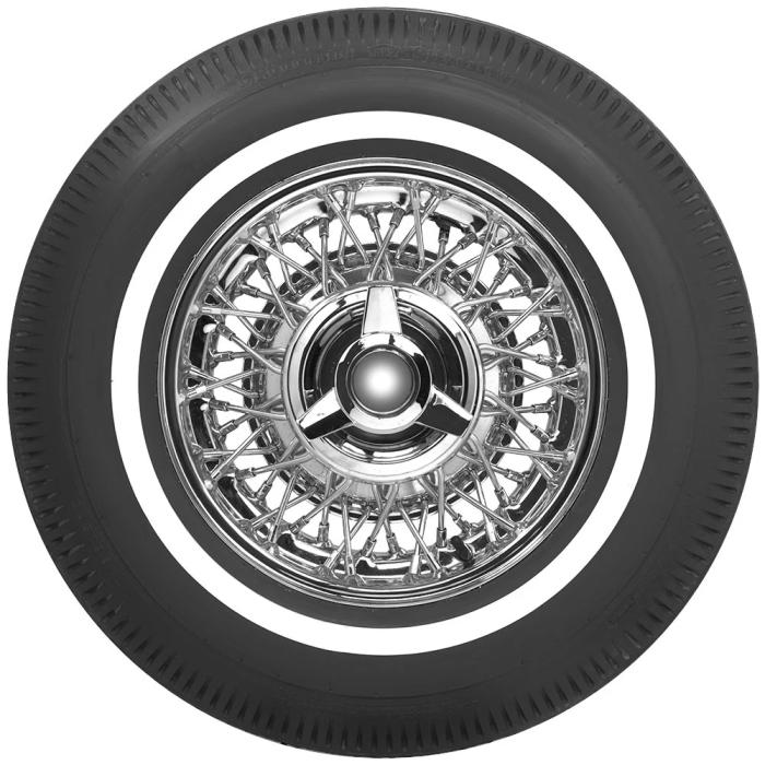 This product features a genuine narrow whitewall sidewall style. This means that the bright white rubber is added directly to the tire sidewall during initial construction of the carcass, resulting in a truly integrated, high-quality product after vulcanization. When we reference "narrow whitewall" tires, we typically mean a whitewall that measures less than two inches, but it can also mean a whitewall that does not reach all the way into the bead. Narrow whitewall tires are popular for many cars built in 1960's all the way into the 1990's.
