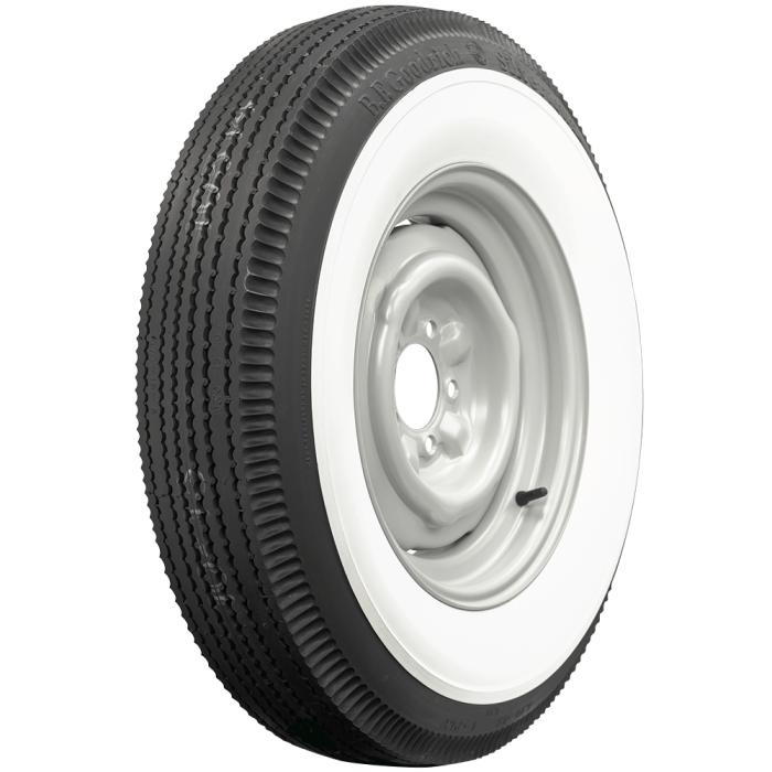 With genuine wide whitewall construction and period-correct sawtooth tread design, these BFGoodrich tires are the ultimate classic tire for collector vehicles. These tires feature a nice pie crust upper sidewall styling and beautiful wide whitewalls. When shopping for tires for vintage cars, look no further than these authentic BFGoodrich wide whites. BFGoodrich bias ply wide whitewall tires are made in the USA and DOT/ECE (European Community) approved where applicable. Wide whitewalls are smooth, with all stampings and lettering in the the black portion of the sidewall and are covered by our exclusive life of the tread warranty. Please note that dimensions listed tread width, section width and overall diameter are non-scientific and based on an inflated tire, mounted on a wheel. Dimensions may vary due to rim width and inflation pressure. Tread patterns and sidewall styles vary, please click on individual tires below to view photos.