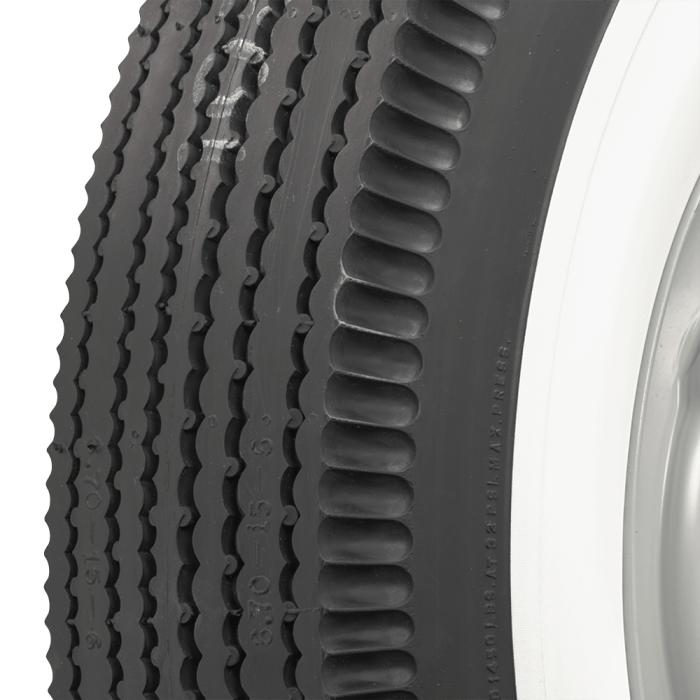 This product features a genuine wide whitewall sidewall style. This means that the bright white rubber is added directly to the tire sidewall during initial construction of the carcass, resulting in a truly integrated, high-quality product after vulcanization. Wide whitewall tires were a very popular choice from the 1930's through the end of the 1950's, and were eventually phased out of mainstream production by 1962. Originally, wide whitewall tires featured a bias ply construction, Coker Tire offers these tires in both original style bias ply and modern radial construction.